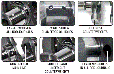 | 4340 & cast crankshafts, 4340 H beam and I beam connecting rods, rotating assemblies, block assemblies, flex plates, dampers |